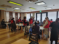 はじめに、福島と大阪の参加者が対面で自己紹介をし、家族単位でのテーブルに分かれ、大阪のメンバーがそれぞれのテーブルにつき、「たこ焼き体験」をしました。各テーブルでは、たこ焼きの焼き方や、具材について、また福島と大阪の話題などの会話もはずみ、楽しい時間を過ごしました。